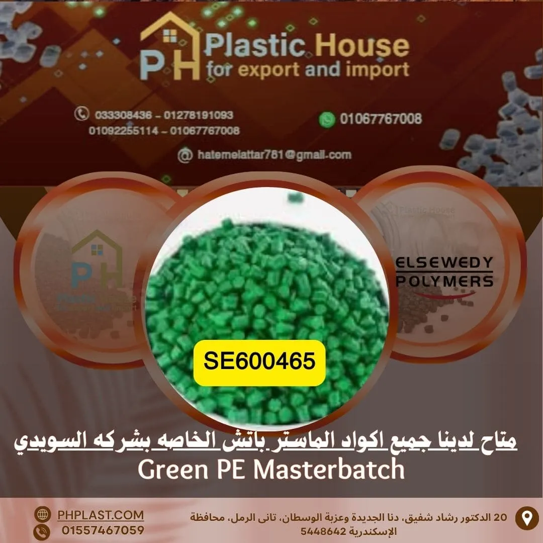 احصل على لون أخضر غني ومشرق لمنتجاتك مع صبغة ماستر باتش السويدي أخضر se600465 من PH Plastic House تواصل عبر 01557467059، المصممة وفق أعلى المعايير السويدية لتوفير ثبات لوني ممتاز وتوزيع متساوٍ وسهل الدمج مع معظم أنواع المواد الحرارية، كما تمنح هذه الصبغة المنتج النهائي مظهرًا جذابًا مع لمسة نهائية ناعمة، وثبات حراري وضوئي ممتاز يجعلها مثالية لجميع خطوط الإنتاج الصناعية، مع تقديم قيمة عالية وأسعار تنافسية مناسبة للمصانع والموردين.
